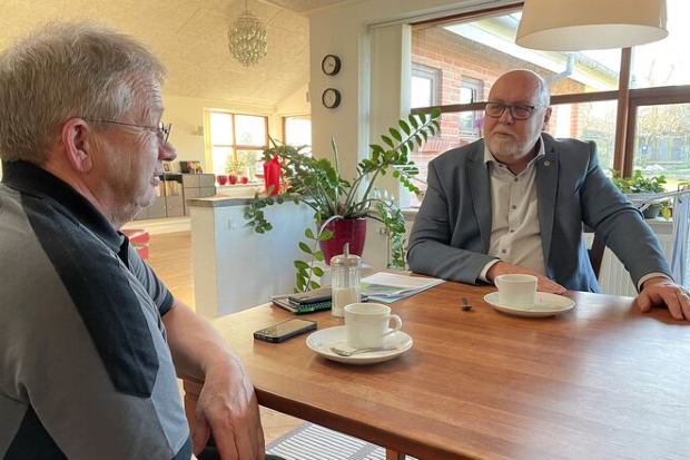 Han er taget til Hjorthede ved Bjerringbro for at tale med Leo Mann, der driver entreprenørvirksomheden Brdr. Mann sammen med sin bror.