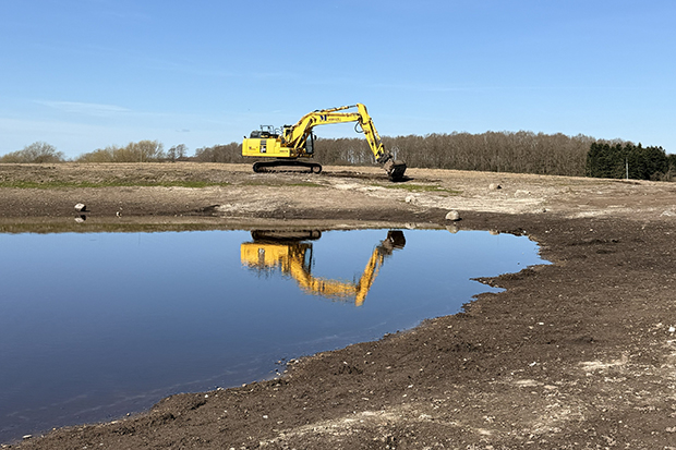 - Siden januar har Team Vand og Natur i Næstved Kommune – bistået af en stor gravemaskine – været i gang i området for at genskabe naturen og det landskab, der har været engang. Foto: Næstved Kommune.