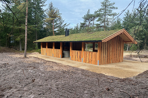 - Et madpakkehus som dette står på ønskelisten til det nye natur- og skovområde Vridsløse Nord. Eksemplet er fra Guldborgsund Kommune, hvor leverandøren Dalgas har rejst et madpakkehus med finansiering fra Region Sjælland og Klimaskovfonden. Modelfoto.