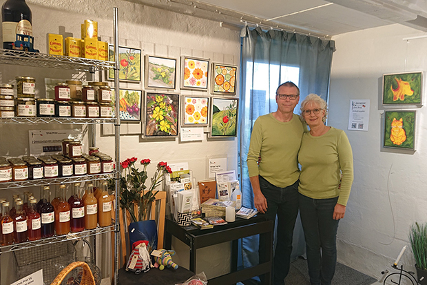 Vivi og Henrik i gårdbutikken i Herluflille. Privatfoto.